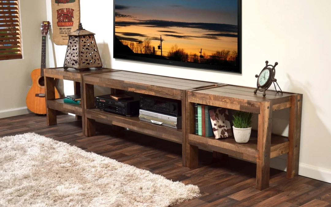 - Rustic Media Consoles — widths from apartment‑friendly to wall‑spanning, adjustable shelves, smart cord exits.